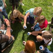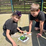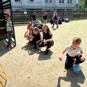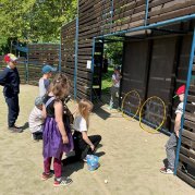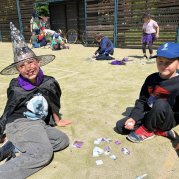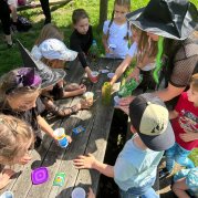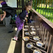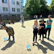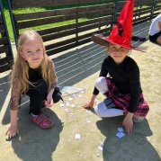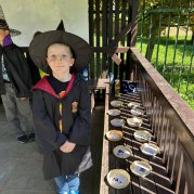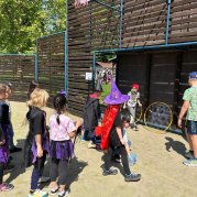 Čarodějnice a čarodějníci se proháněli školní zahradou a plnili různé čarodějné úkoly.
