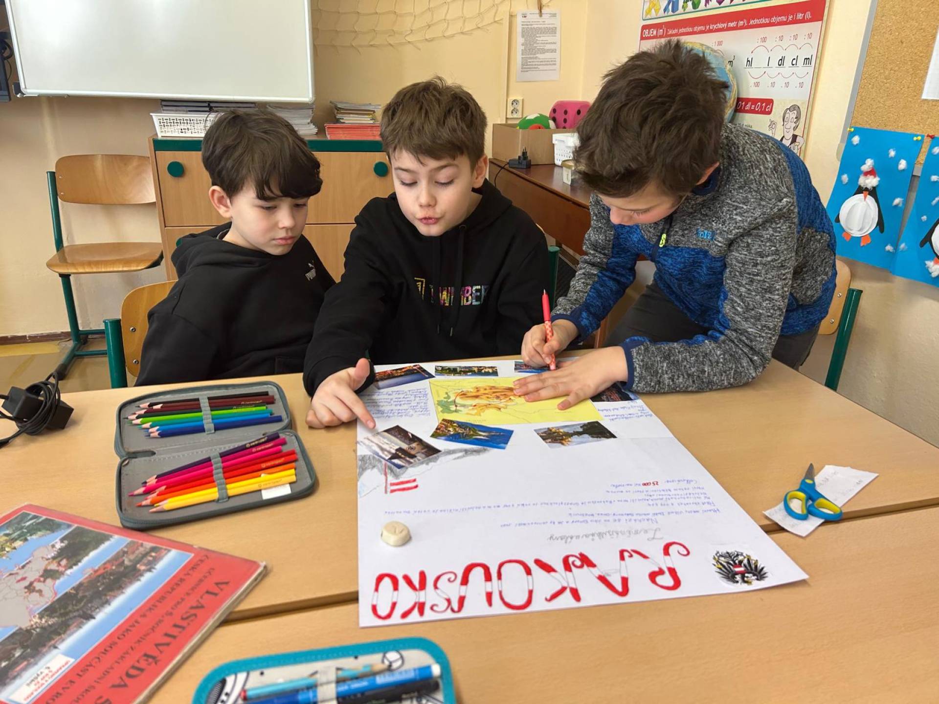 Žáci 5. M ve čtvrtek 22. 1. 2026 pracovali v průběhu celého dne na vlastivědném projektu s názvem Cestovní kancelář.