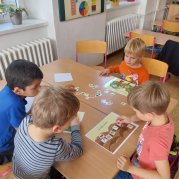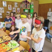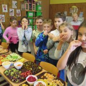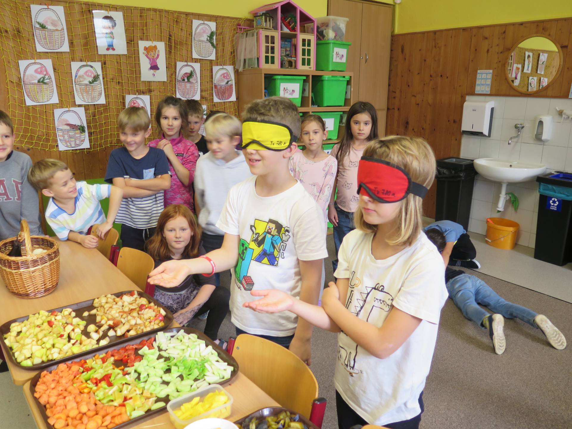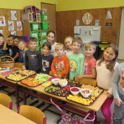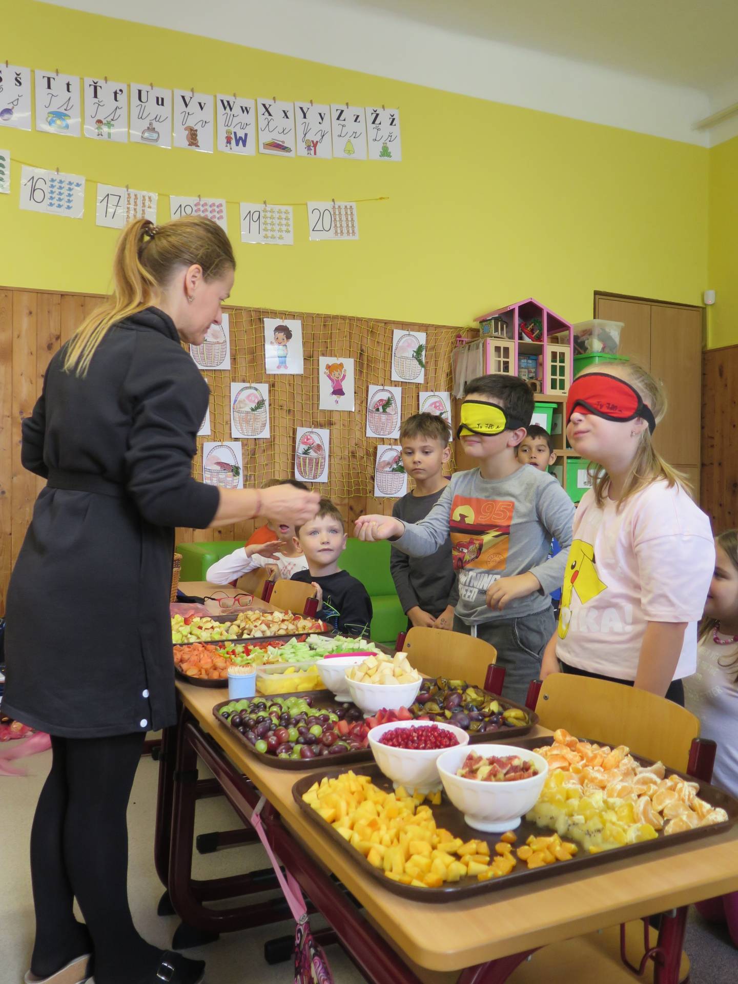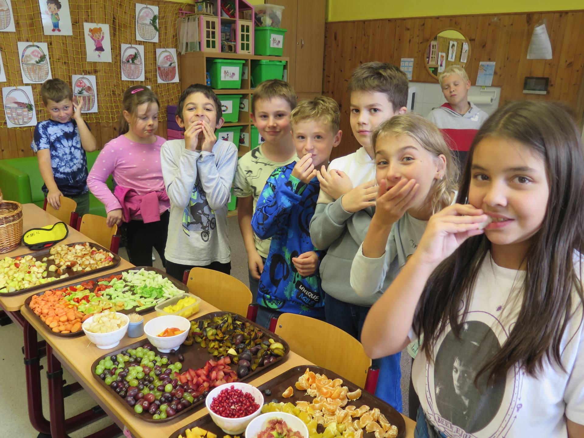 V říjnu jsme pro děti připravili podzimní projektový den s ochutnávkou nejen podzimních plodin, sportováním a zábavným učením. Všem rodičům děkujeme za přinesené potraviny.