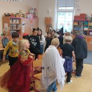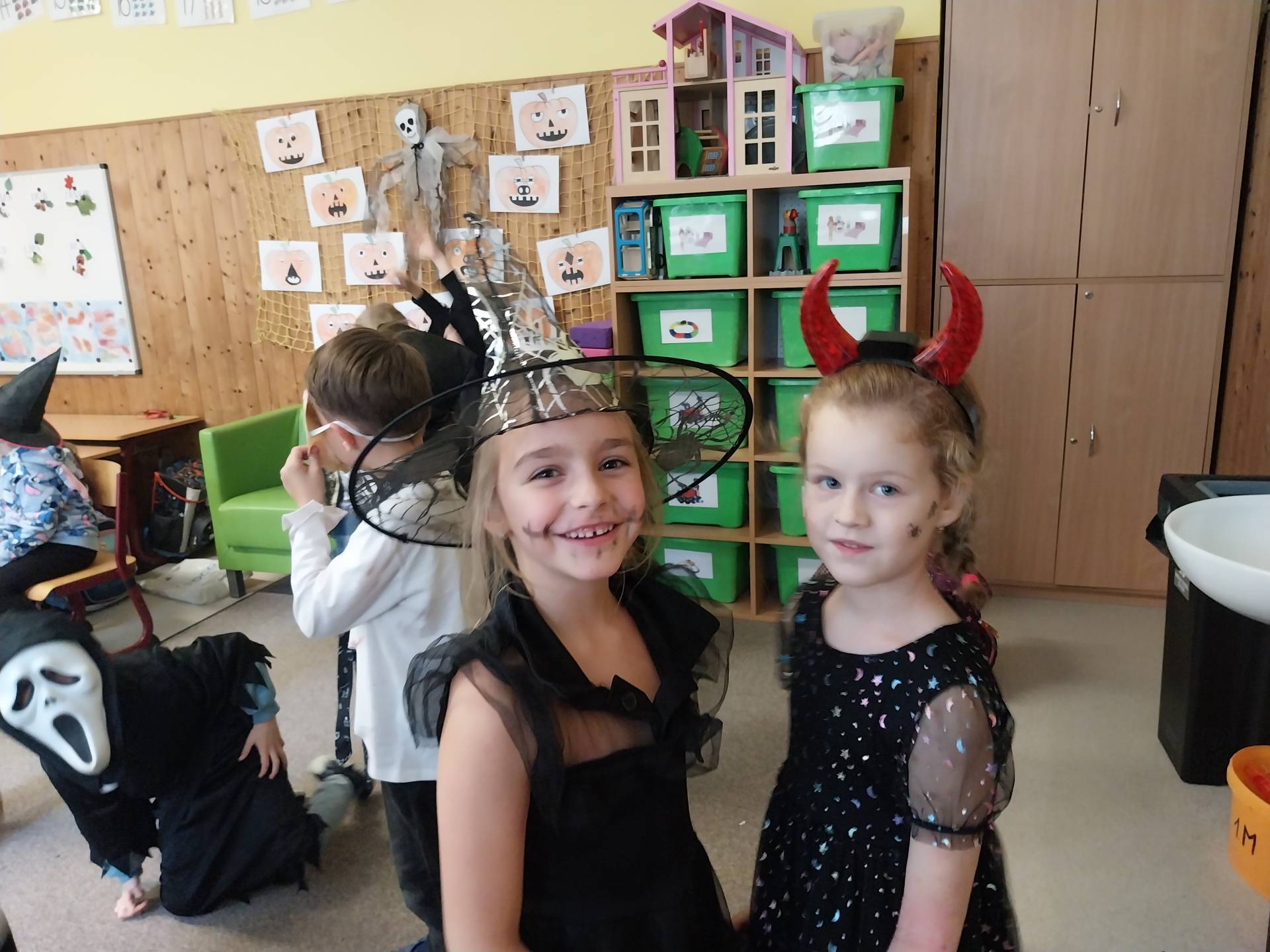 V říjnu jsme uspořádali halloweenský karneval s promenádou masek, tancem, soutěžemi a s bohatým občerstvením, za které všem rodičům děkujeme.