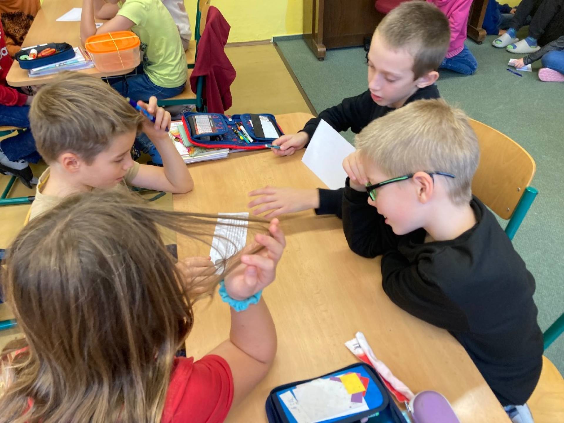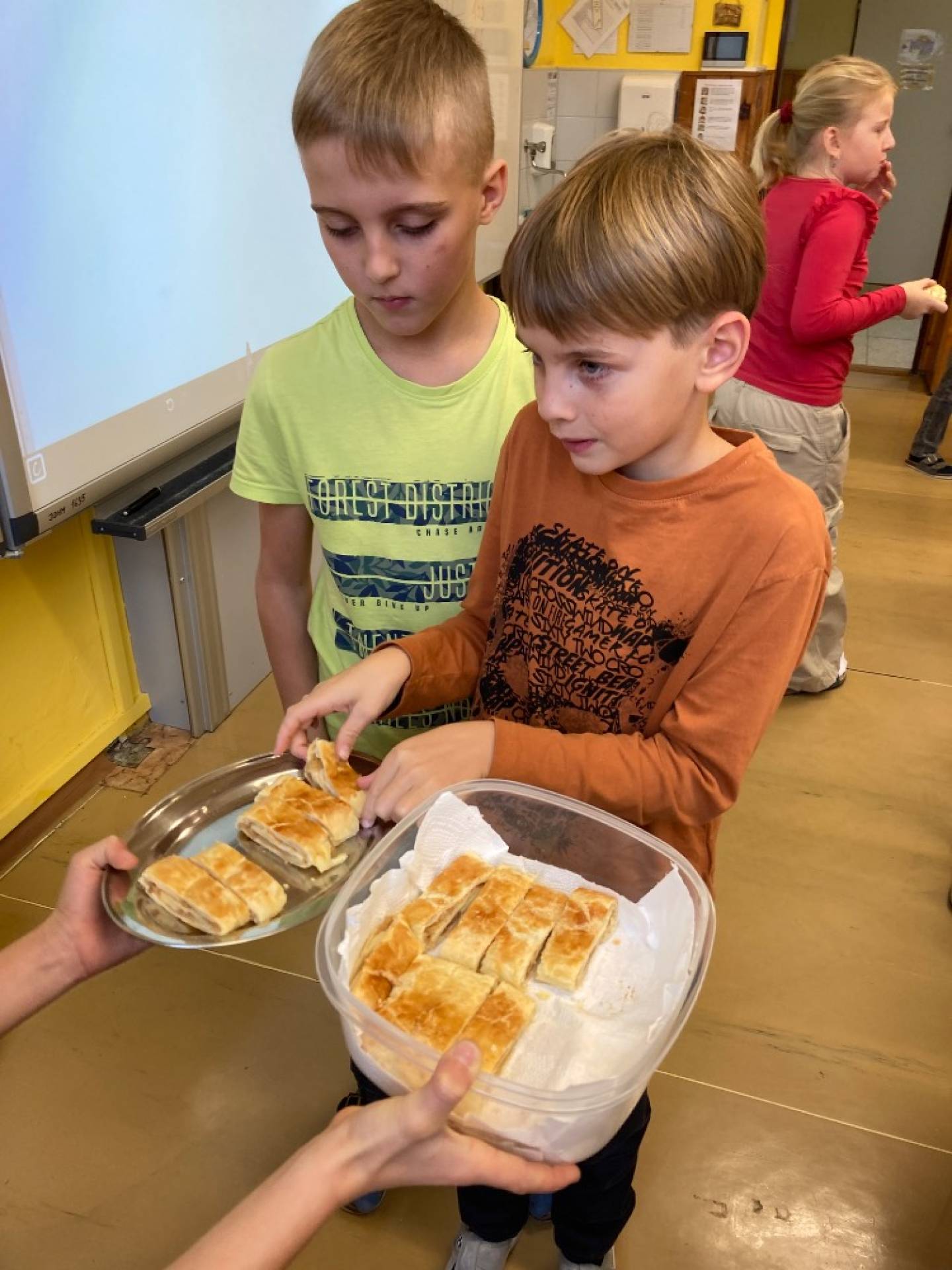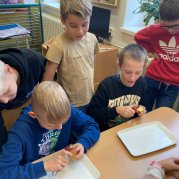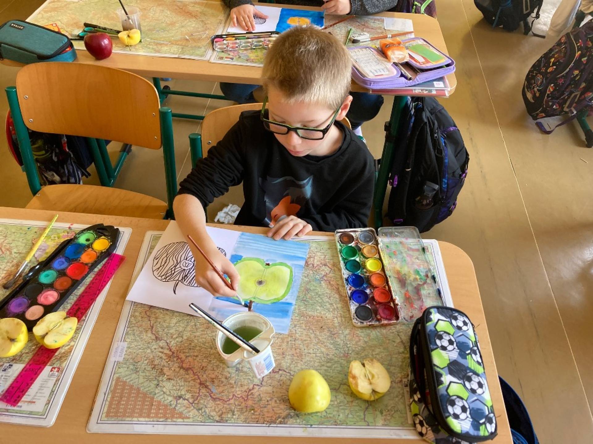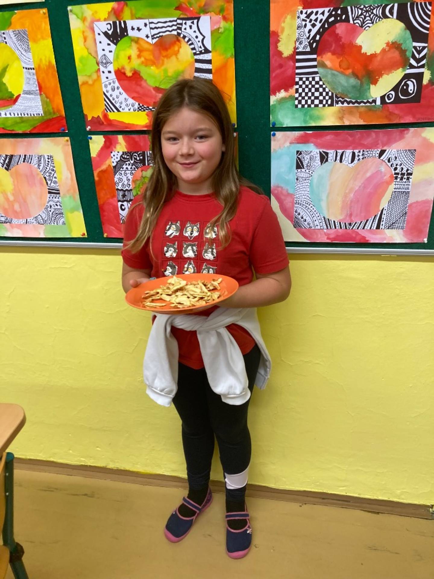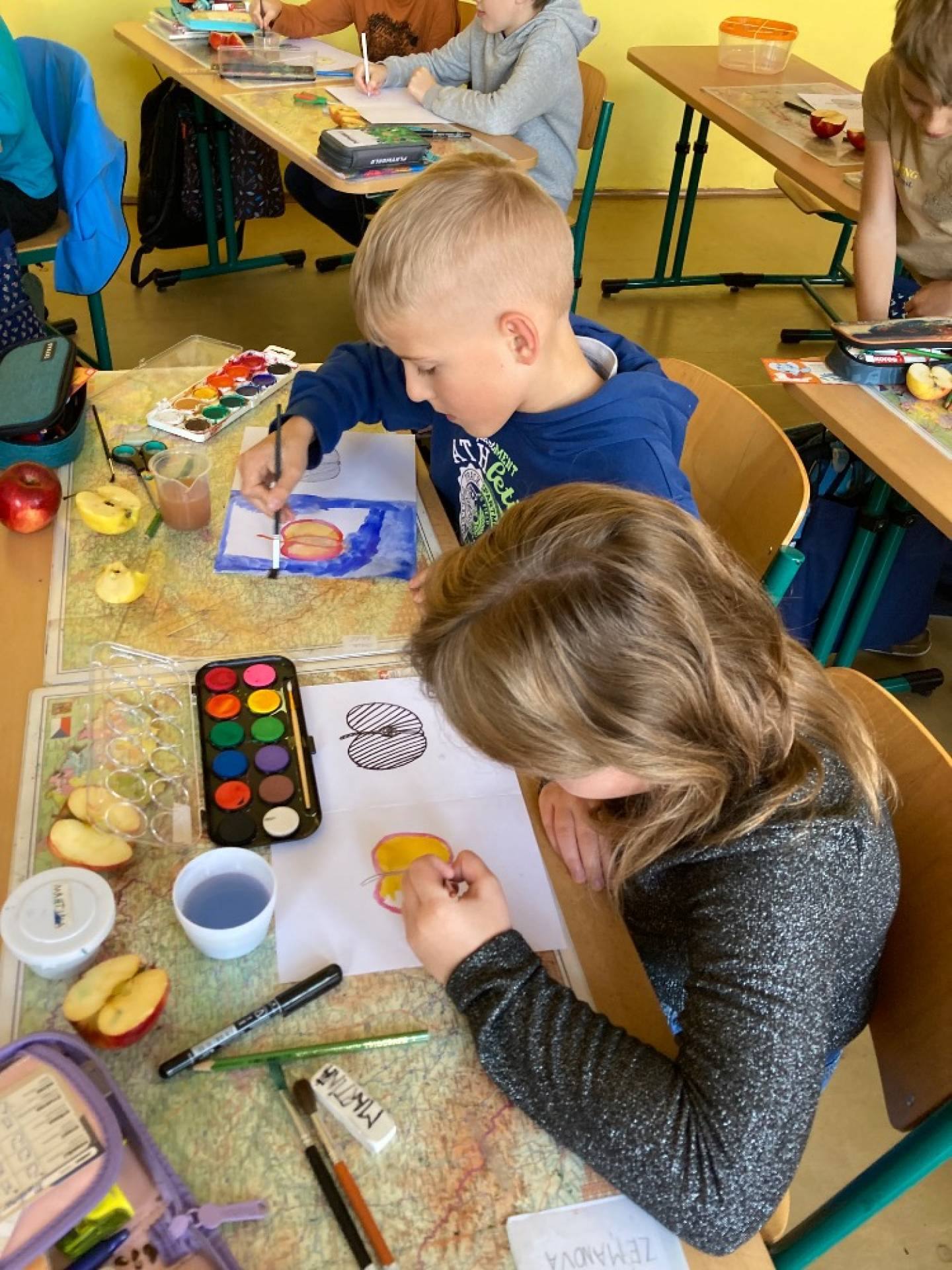 V projektovém dni jablečné téma prolínalo celým dopoledním vyučováním. Proběhla výstavka různých druhů jablíček přinesených žáky ze zahrádek, četli jsme a vyhledávali zajímavé informace o tomto oblíbeném ovoci a jeho blahodárných účincích na zdraví člověka. Nechyběly ani básničky, pohádky a příběhy s jablkem, při hrátkách se slovem jablko opakovali mluvnické učivo z nižších ročníků, s jablíčky jsme počítali ve slovních úlohách, soutěžili v okrajování nejdelší slupky, současně procvičovali praktické měření délky a jednotky délky, zjišťovali hmotnost jablka na digitální váze, porovnávali a převáděli jednotky hmotnosti, také jsme z přinesených jablíček tajnou volbou vybrali to nejkrásnější – dozrálo na zahrádce prarodičů Filipa Slamky. Zpívali jsme písničky, kreslili, stříhali, vyráběli a skládali násobilkové puzzle ve tvaru jablka. Příjemným zakončením Mezinárodního dne jablka byla ochutnávka jablečné pochoutky šikovných maminek našich žáků!