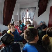 Žáci s kočkou Olou poznávali památky na Horním náměstí v Olomouci a prohlédli si radnici s výkladem průvodkyně.
