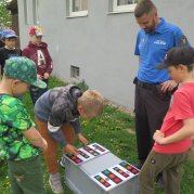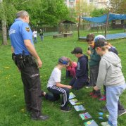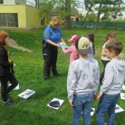 V rámci dubna - měsíce bezpečnosti jsme strávili odpoledne dopravním programem a aktivitami, které si pro naši družinu připravili příslušníci Městské Policie.