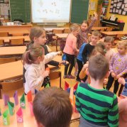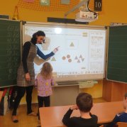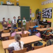Budoucí prvňáčci z MŠ Střední Novosadská a MŠ Rooseveltova se přišli podívat do výuky první a druhé třídy. Společně si zazpívali a zacvičili si.
