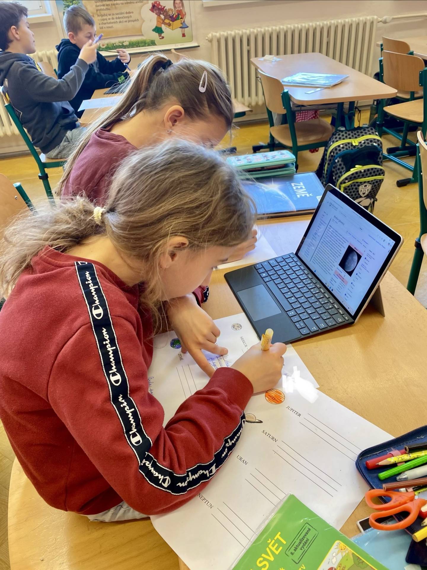 Nejvíce času bylo vesmíru věnováno v prvouce. Děti hledaly zajímavosti v encyklopediích, které si přinesly. Spoustu poznatků získaly na internetu a také při rozhovorech se svými rodiči. Vše zpracovaly v projektu.