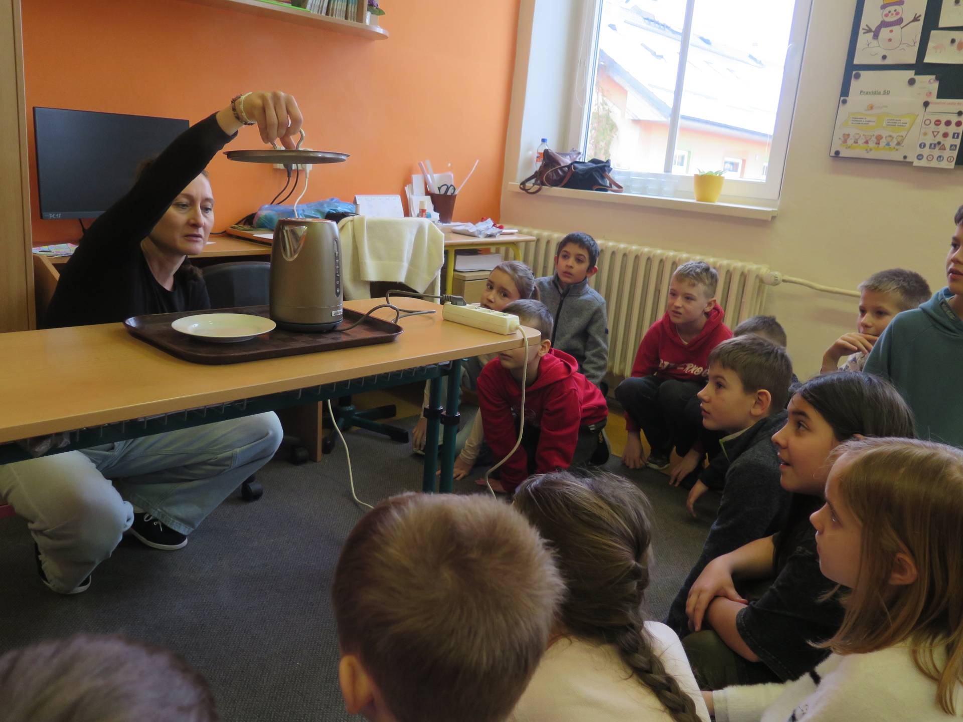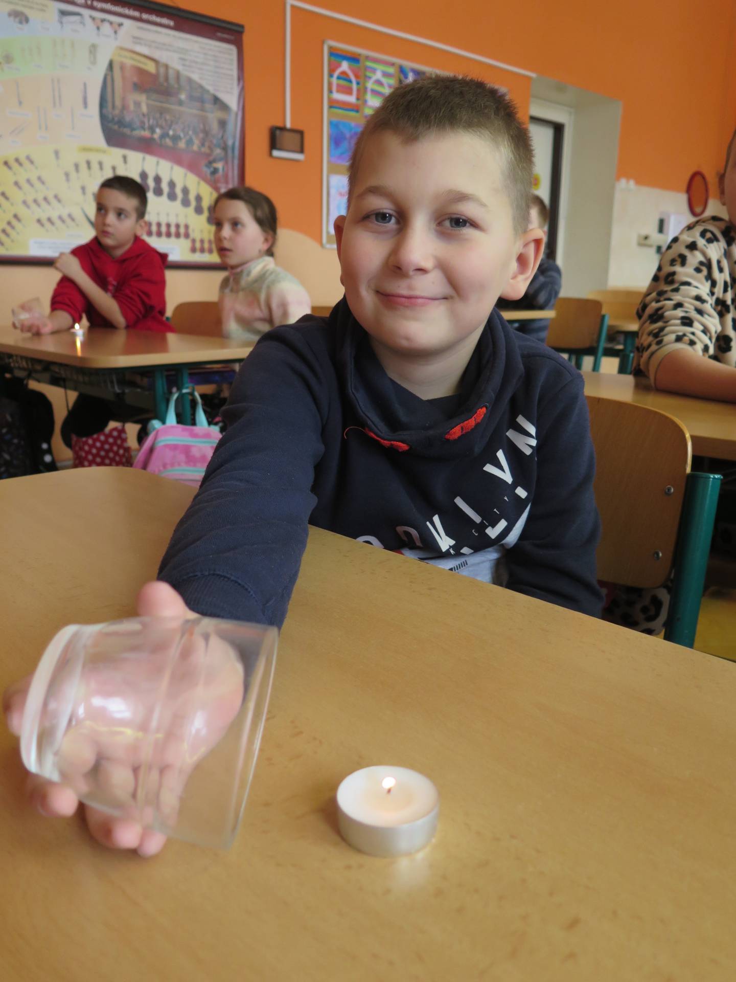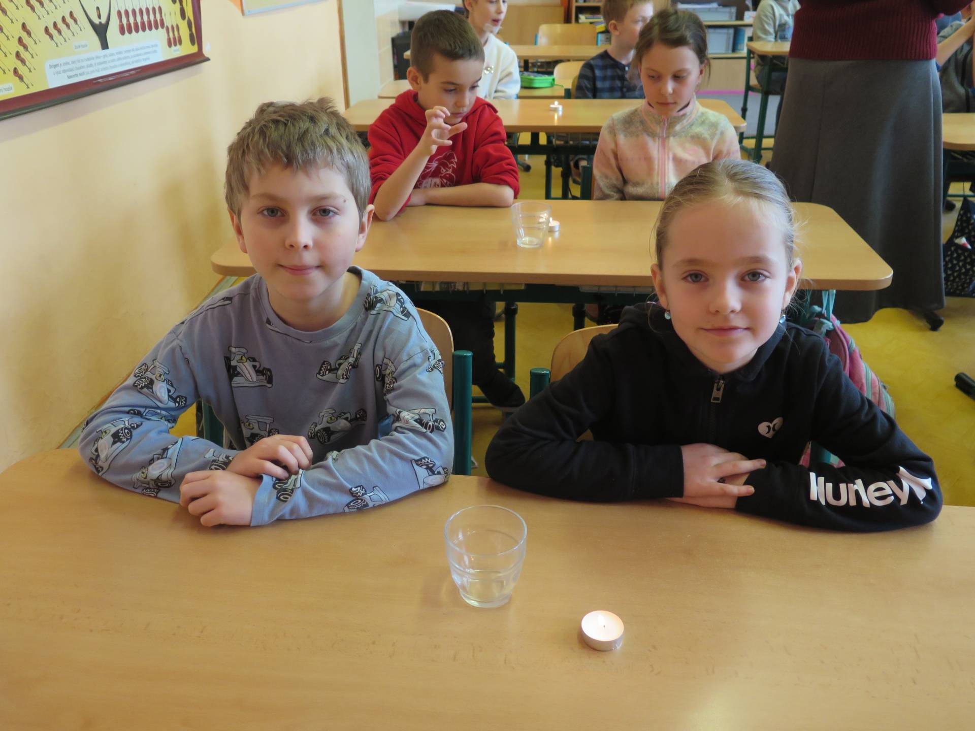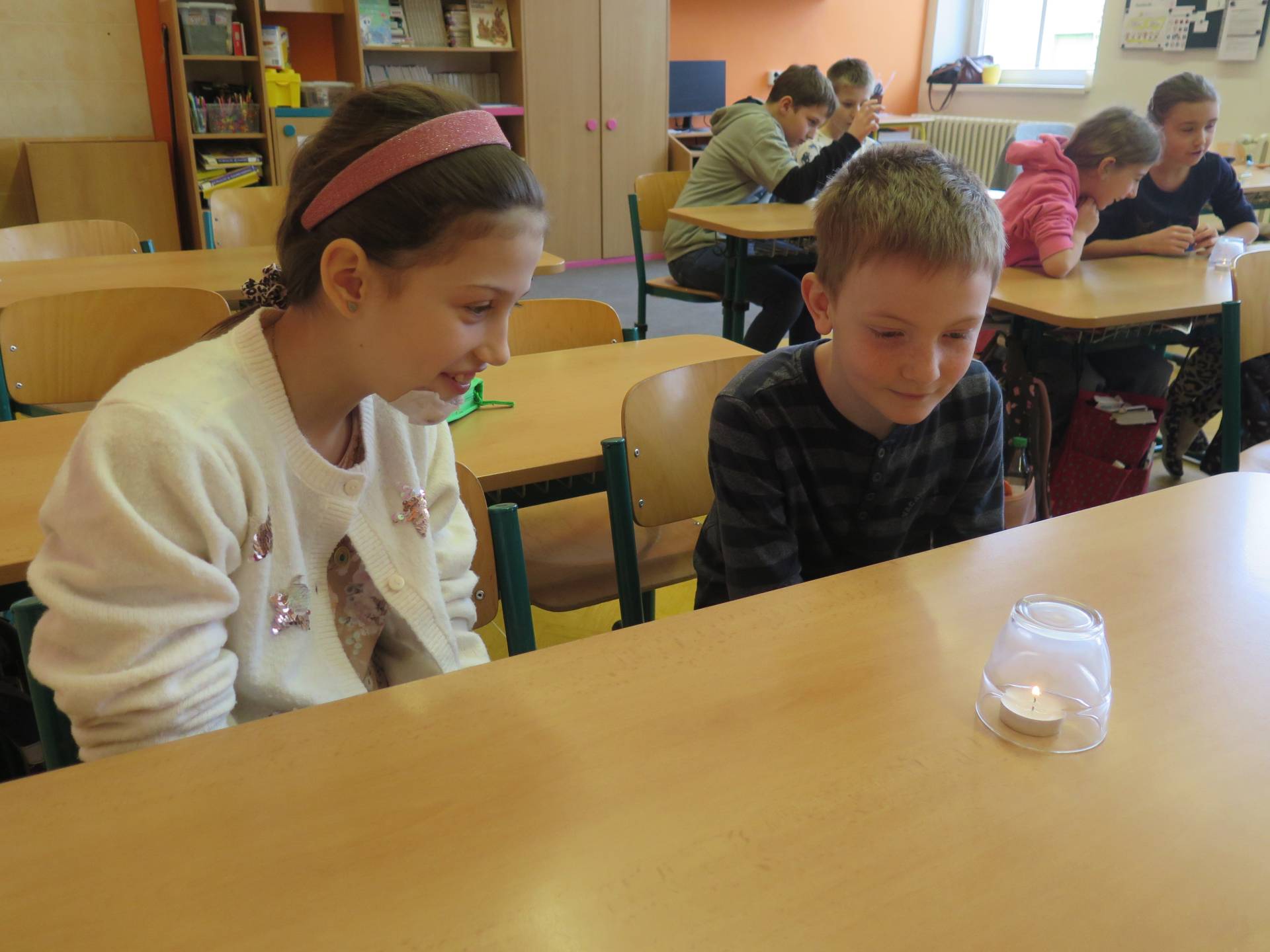 Pokusy byly součástí učiva prvouky. V prvním z nich žáci zjišťovali, za jakých podmínek se promění sníh ve vodu. Znázornění koloběhu vody v přírodě byla druhá z činností. Třetí den si pak děti položily otázku, zda bude hořet svíčka přikrytá skleničkou.