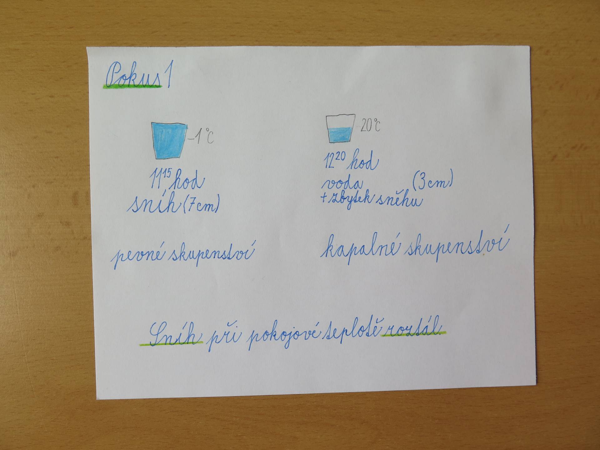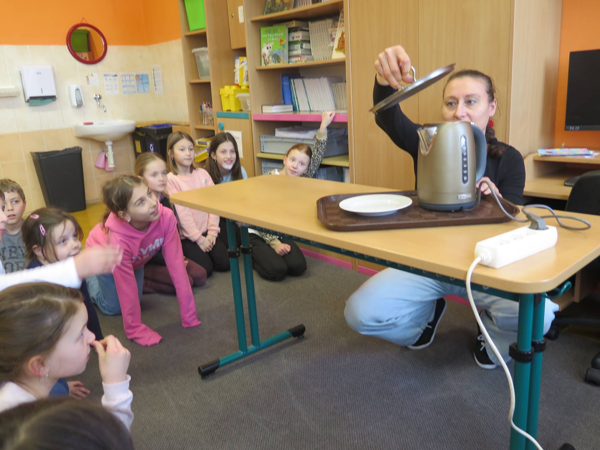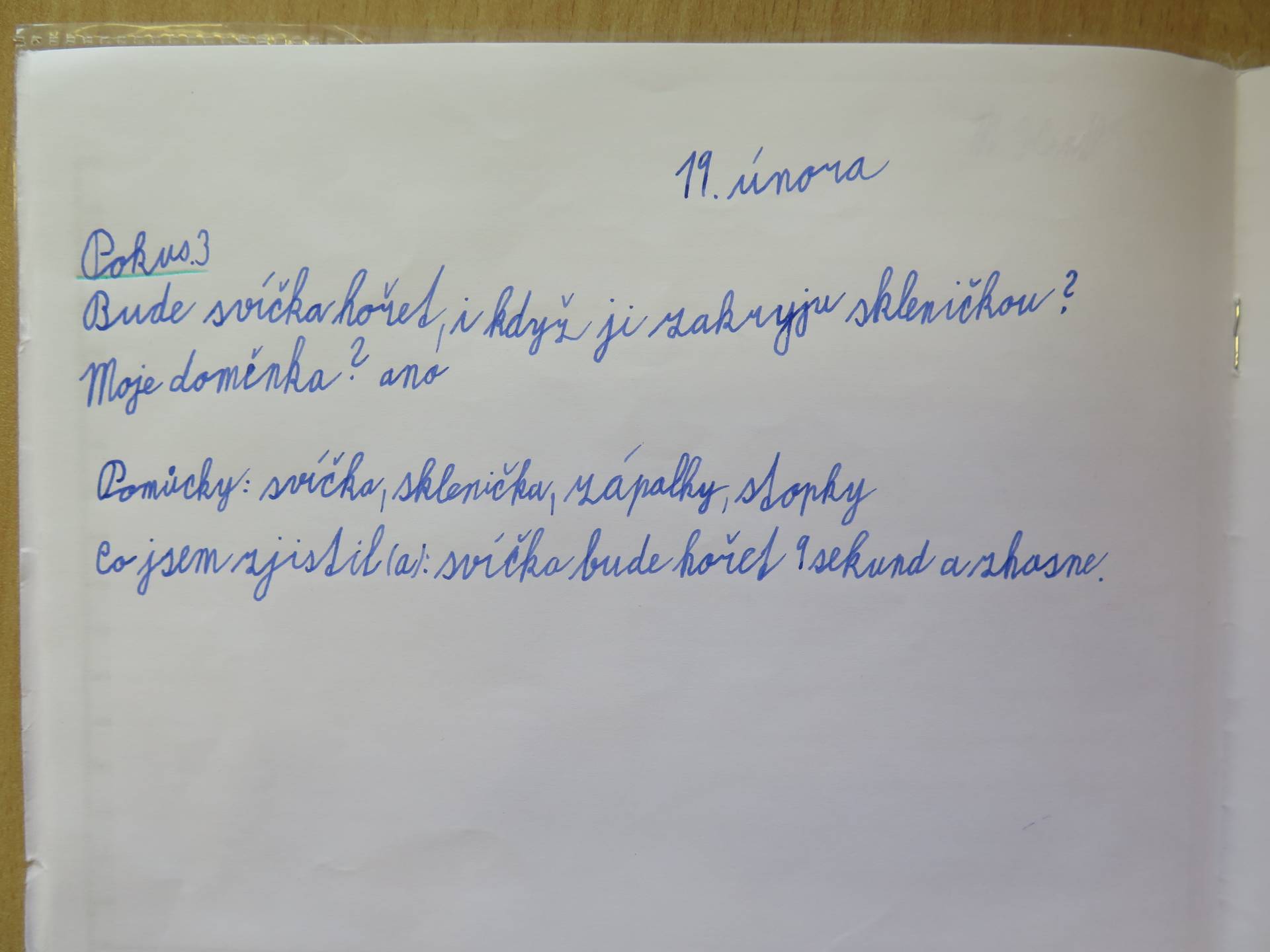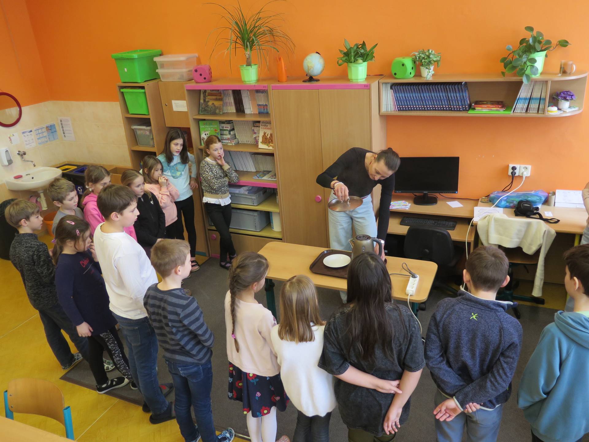 Pokusy byly součástí učiva prvouky. V prvním z nich žáci zjišťovali, za jakých podmínek se promění sníh ve vodu. Znázornění koloběhu vody v přírodě byla druhá z činností. Třetí den si pak děti položily otázku, zda bude hořet svíčka přikrytá skleničkou.