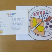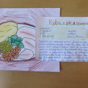 V návaznosti na besedu žáci napsali recepty na přípravu svých oblíbených jídel a posoudili, která z nich jsou opravdu zdravá. Tato jídla také namalovali. Někteří vytvořili fotografický návod na přípravu jídla nebo videorecept.